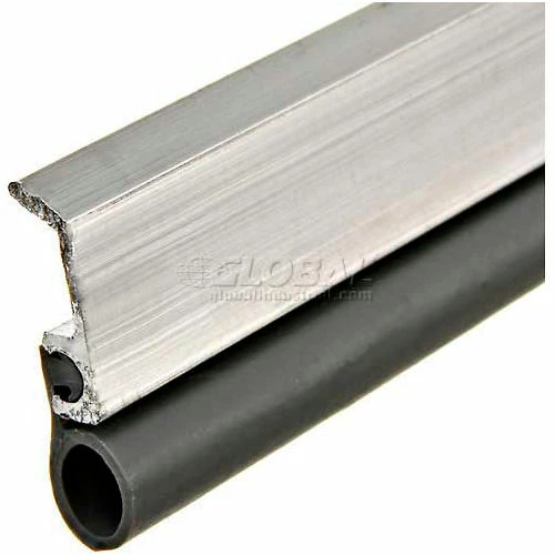 Door set includes durable extruded aluminum plus a tubular vinyl strip which will withstand years of active service. 3/4″ x 17′ set includes 2 pieces of 7′ aluminum and 1 piece of 3′ vinyl nail-on. Grey.