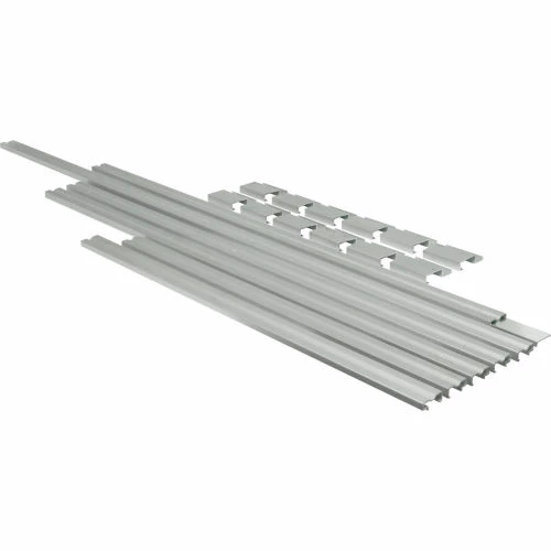 Allows the screen to be held firmly and squarely in place while installing screen fabric. 5 bar set includes: 2 bars drilled for attachment to table, 3 free moving bars, and 12 moveable aluminum screen frame clips for 3/4″ frame.