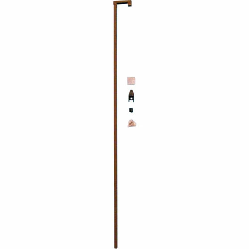 This security bar lock is constructed from extruded aluminum and comes finished in bronze. It features a stamped steel hinged retainer for the open position. This security bar lock has a plastic retainer with key for the locked position.