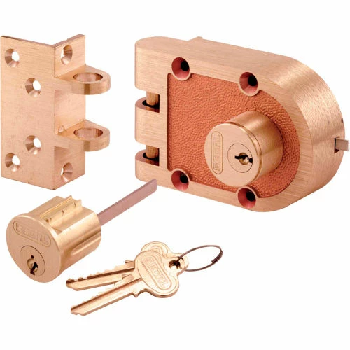 This deadlatch is constructed from bronze and comes plated in brass. It includes 2 keys. This deadlatch comes complete with hardware for a quick and easy installation.